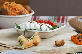 Icons: Papier, kompostierbar, kalte & warme Speisen, auslaufsicher, Direktdruck, Aufkleber, nachhaltig, funktional, Premiumdesign, präsentationsfertig
